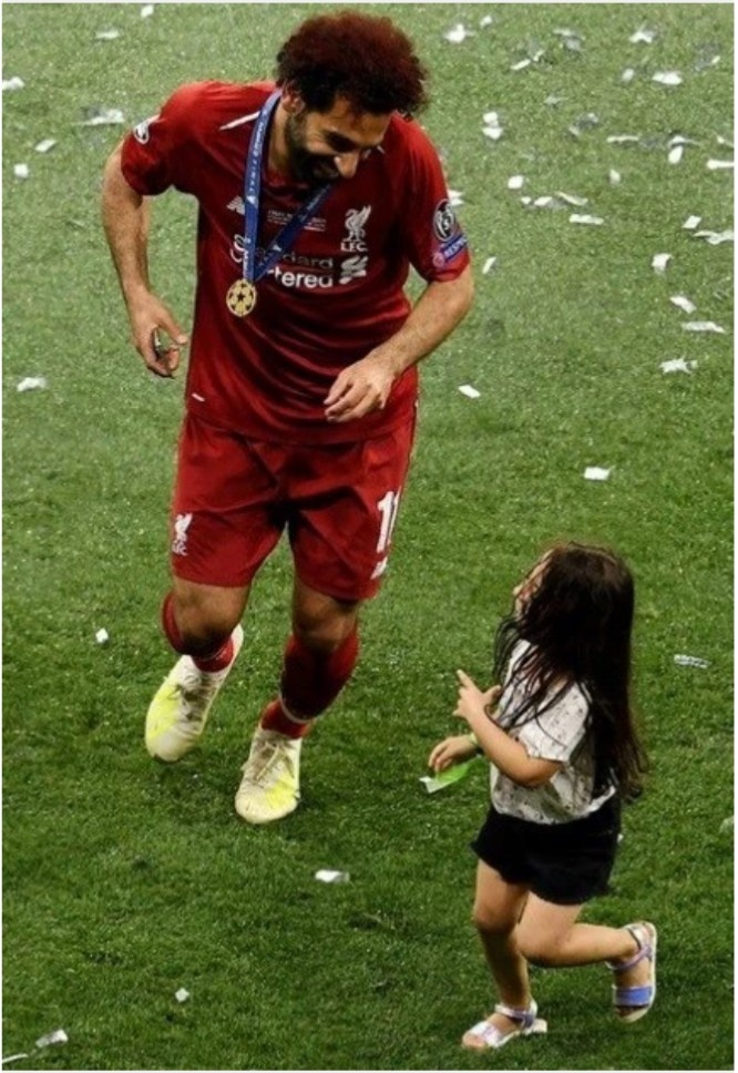 After the champions league match, salah and his daughter are spotted celebrating her father’s victory. The adorable daughter of the champions league winner who’s dressing is bound to inspire Muslims but for one it wasn’t all he feels is disapproval. According to him the Egyptian legend dresses his daughter in an unislamic fashion.